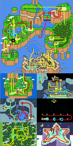 赤が一週目、黄が二週目、青丸はヨッシーの羽でクリアするところ、